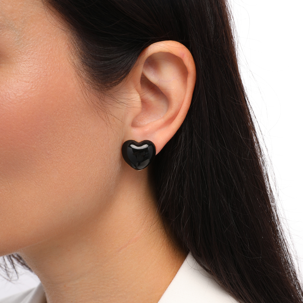 Описание: Изготовлено из ювелирного сплава на основе латуни с гальваническим покрытием золотом. Изделие украшает черная эмаль. Размер серьги 1.8х1.8см. Застежка-гвоздики.