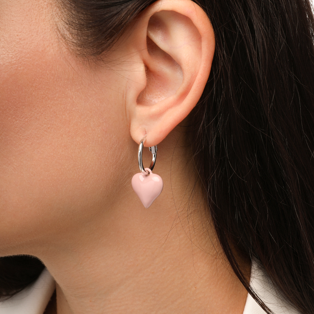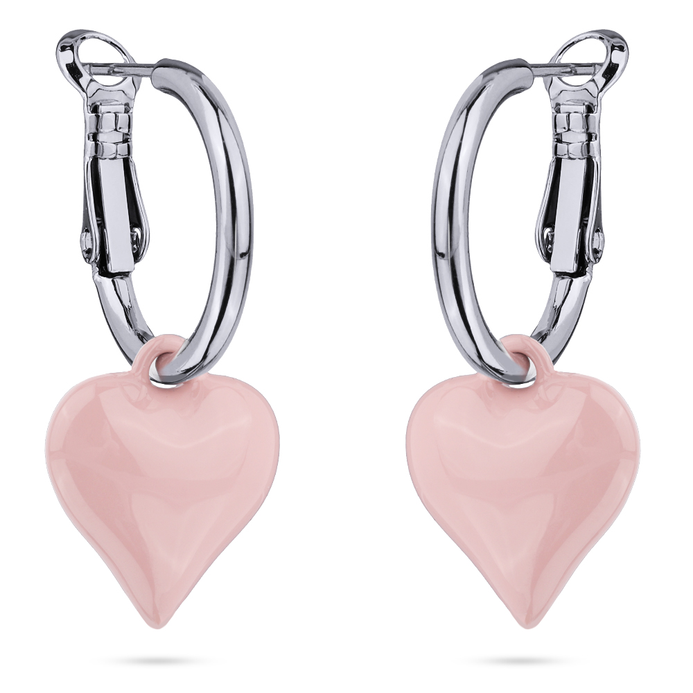 Описание: Изготовлено из ювелирного сплава на основе латуни с гальваническим покрытием родием. Изделие украшает розовая эмаль. Размер серьги 3, 5х1, 6см. Итальянская застежка.