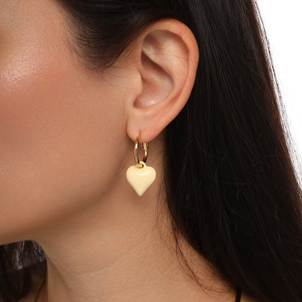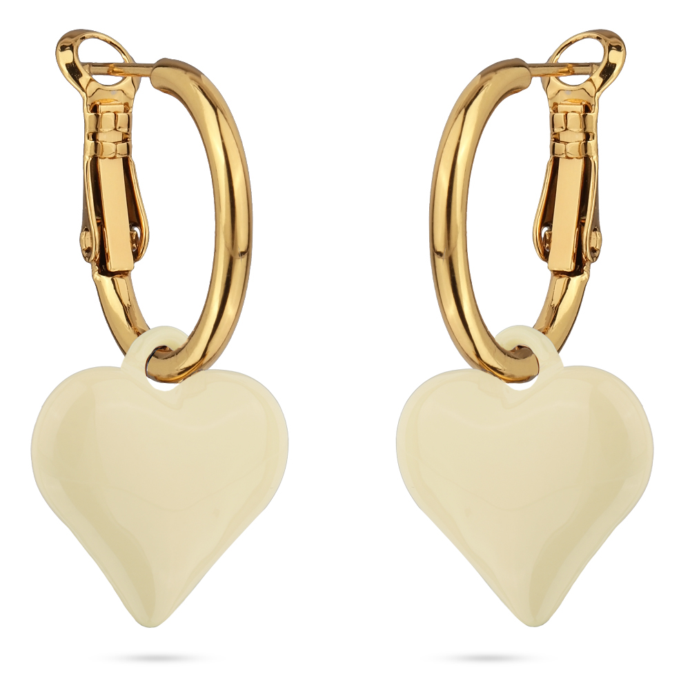 Описание: Изготовлено из ювелирного сплава на основе латуни с гальваническим покрытием золотом. Изделие украшает эмаль цвета сливочного масла. Размер серьги 3, 5х1, 6см. Итальянская застежка.
