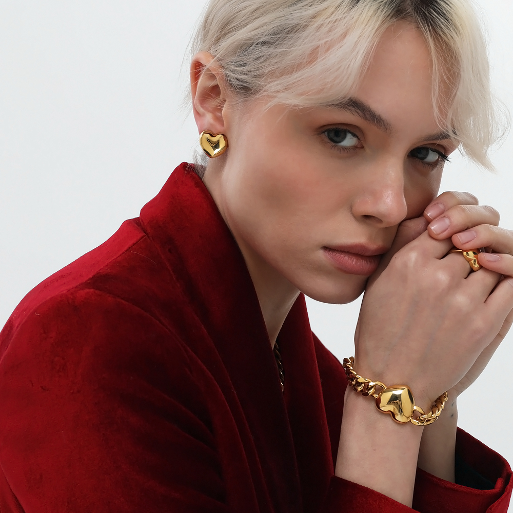 Описание: Изготовлено из ювелирного сплава на основе латуни с гальваническим покрытием золотом. Размер серьги 1, 8х1, 8см. Застежка-гвоздики.