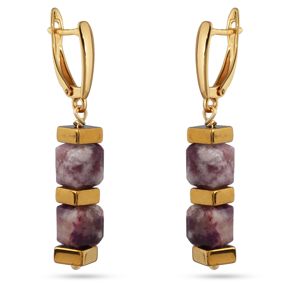 Описание: Изготовлено из ювелирного сплава на основе латуни с гальваническим покрытием золотом. Изделие украшает сливовый турмалин. Длина серьги 4, 5см. Английская застежка.