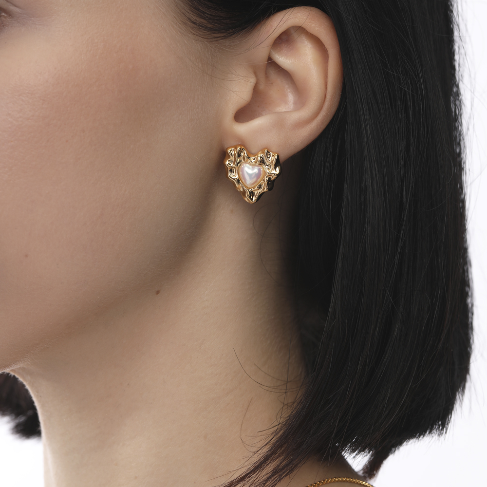 Описание: Изготовлено из ювелирного сплава на основе латуни с гальваническим покрытием золотом. Изделие украшает ювелирная смола белого цвета. Размер серьги 2х1, 8см. Застежка-гвоздики.