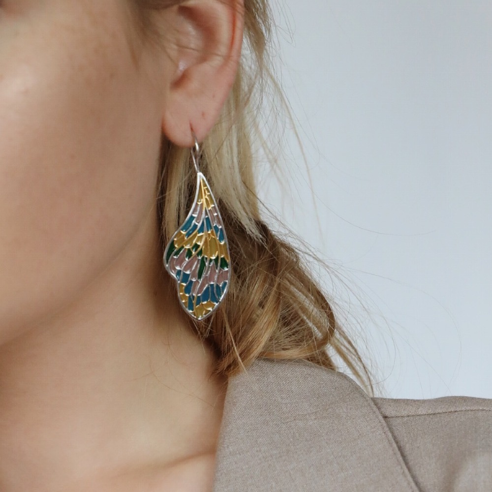Описание: Изготовлено из ювелирного сплава на основе латуни с гальваническим покрытием родием и золотом. Изделие вручную расписано ювелирной краской разного цвета и покрыто эмалью. Застёжка в форме крючка. Длина 6см.