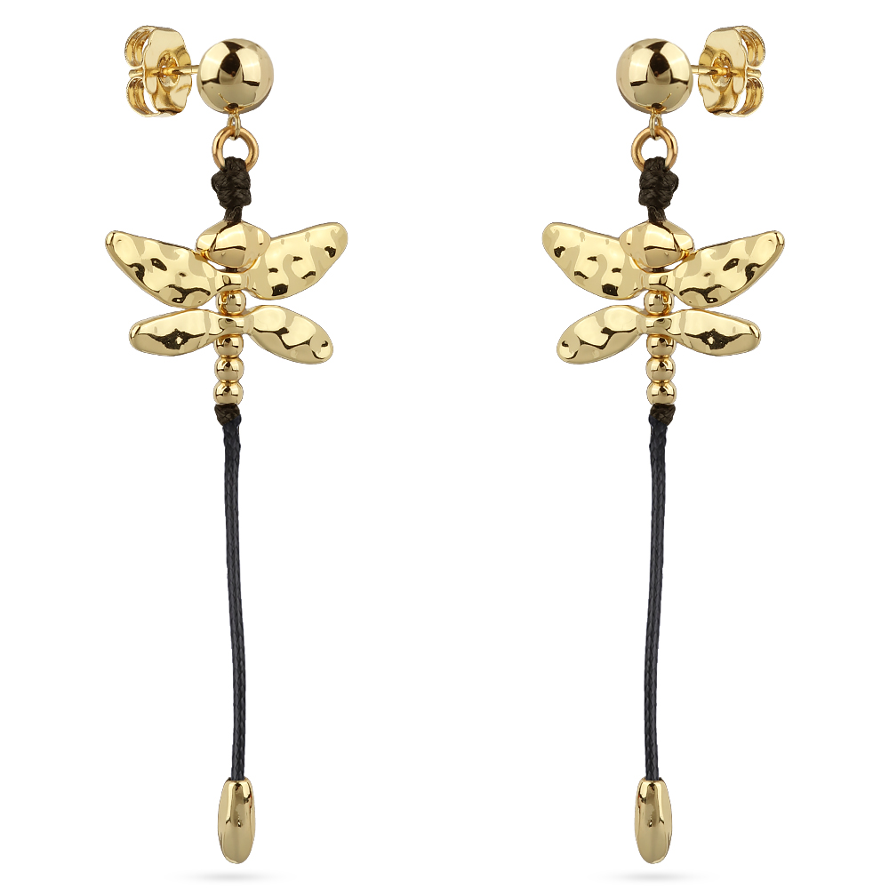 Описание: Изготовлено из ювелирного сплава на основе латуни с гальваническим покрытием золотом. Длина сережек на шоколадном текстильном шнурке 8см. Застёжка — гвоздики.