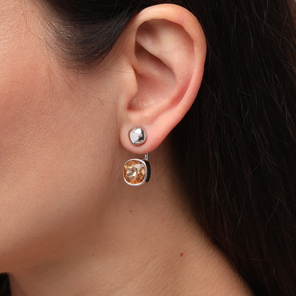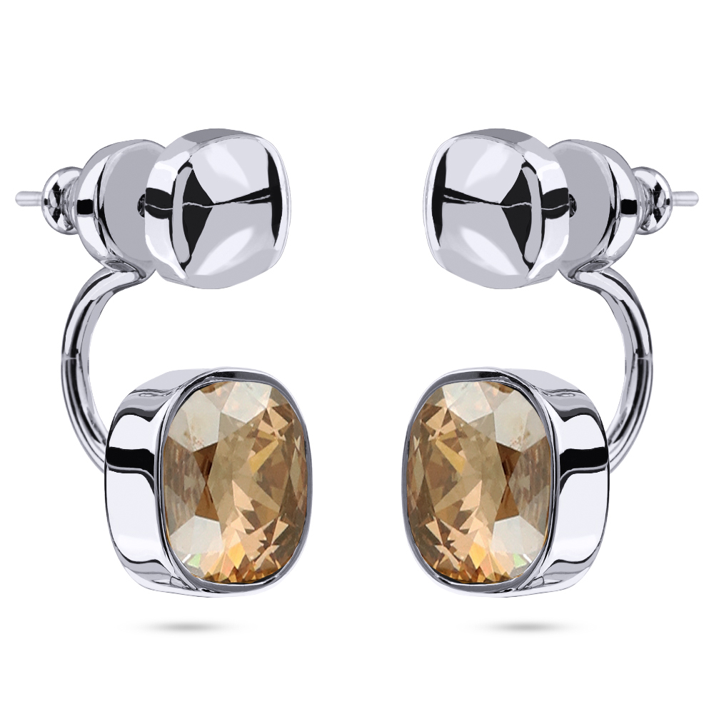 Описание: Изготовлено из ювелирного сплава на основе латуни с гальваническим покрытием родием. Изделие украшают кристаллы SW цвета дымчатый топаз диаметром 10мм. Длина серьги 2.4см. Застежка-гвоздики.