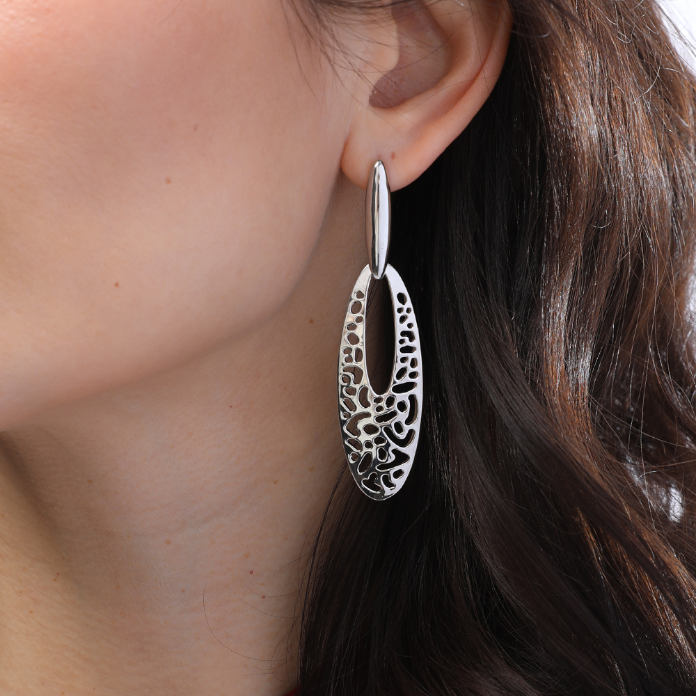 Серьги Узоры (покрытие родий)
