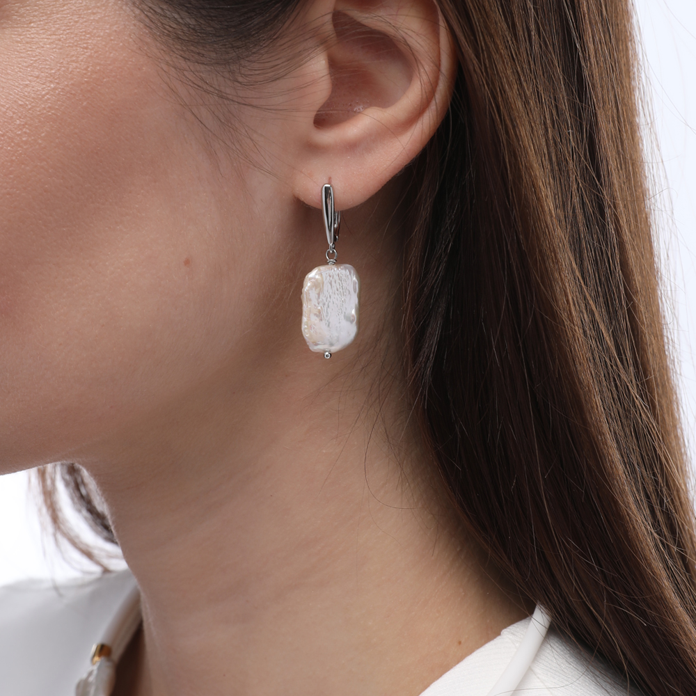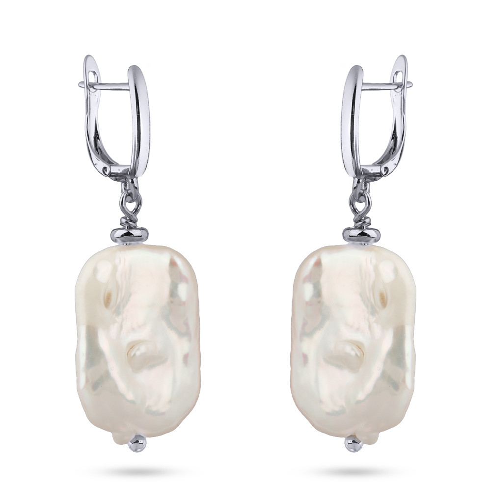 Описание: Изготовлено из ювелирного сплава на основе латуни с гальваническим покрытием родием. Изделие украшает жемчуг белого цвета. Длина серьги 4см. Английская застежка.