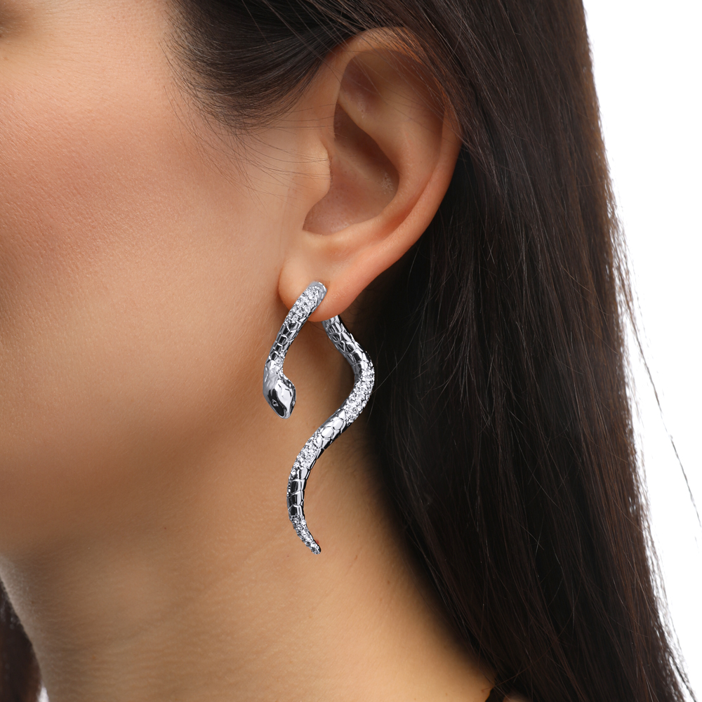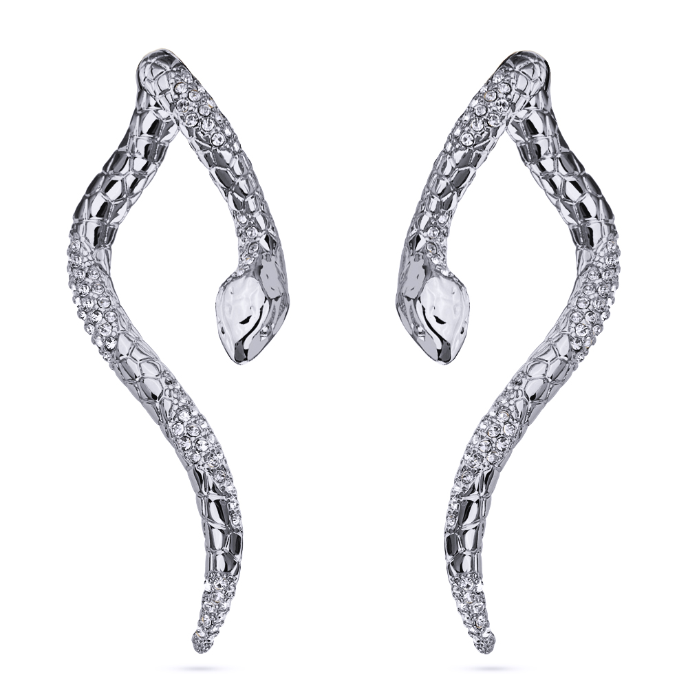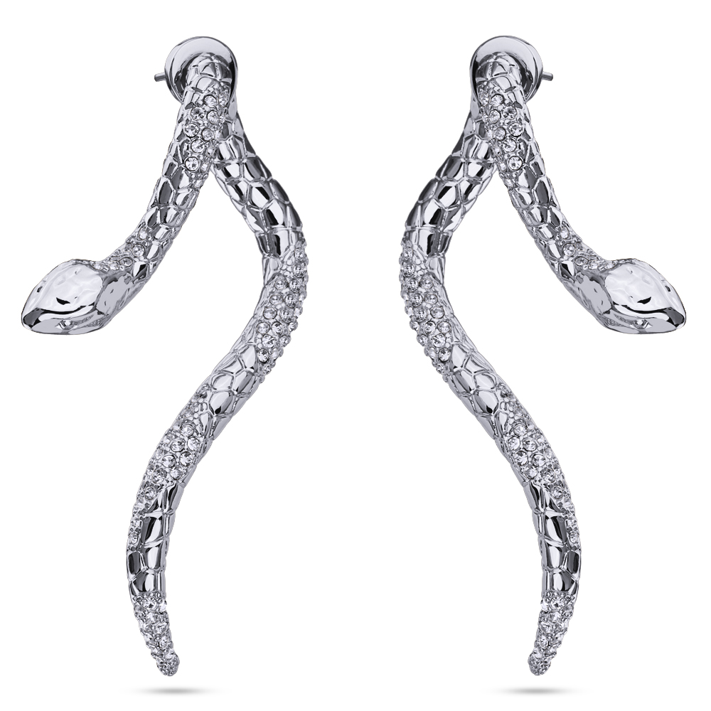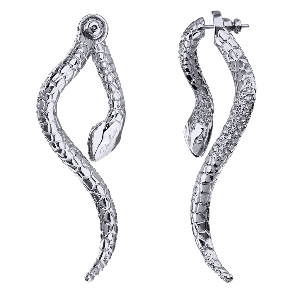 Описание: Изготовлено из ювелирного сплава на основе латуни с гальваническим покрытием родием. Изделие украшают белые кристаллы SW. Длина серьги 6см. Застежка-гвоздики.